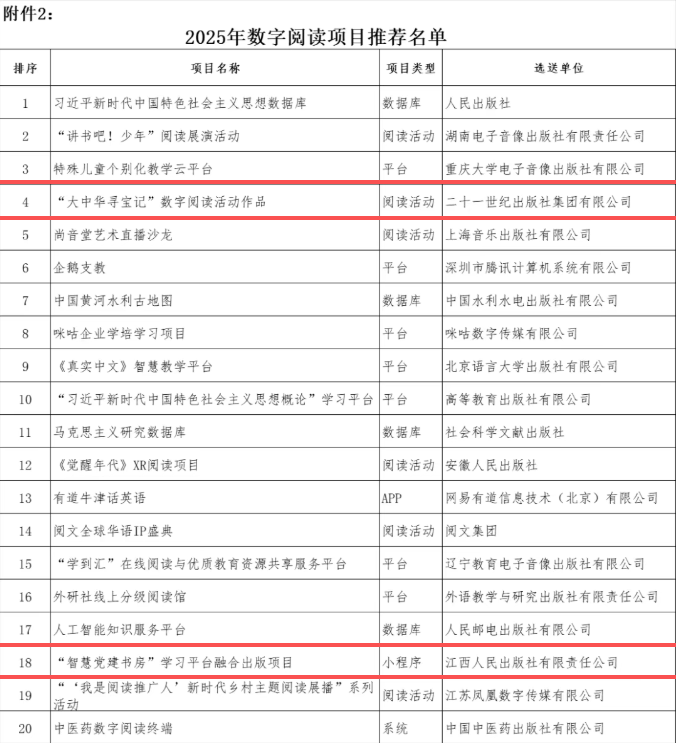 集团公司旗下2个项目入围“2025年数字阅读推荐项目”
